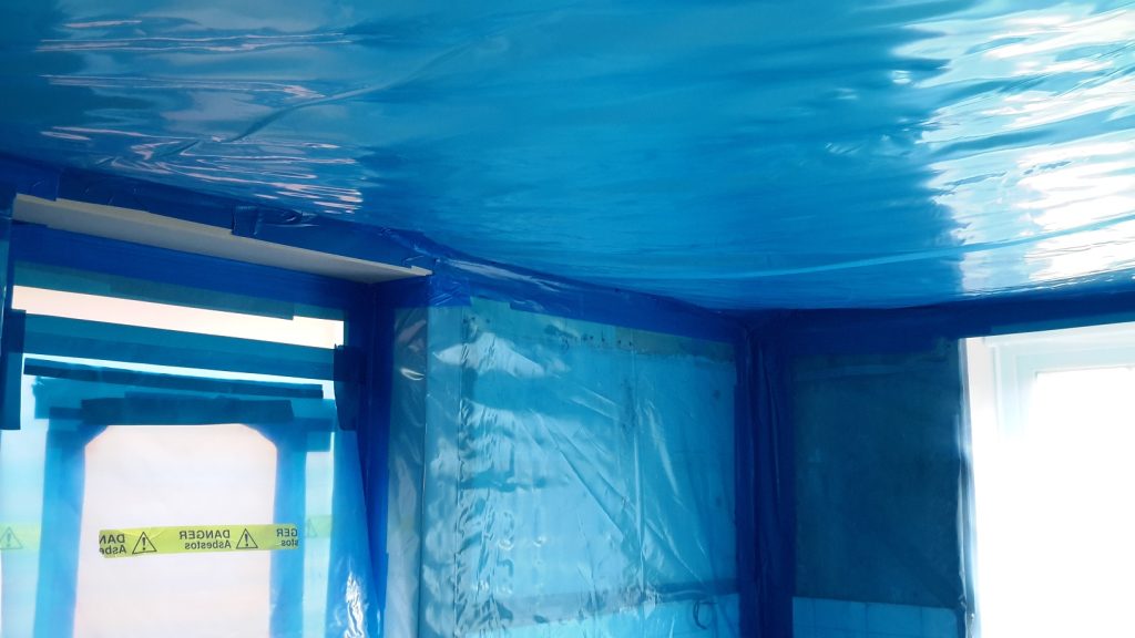 Once all the polythene has been hoovered and wiped it is removed and placed into Asbestos bags.