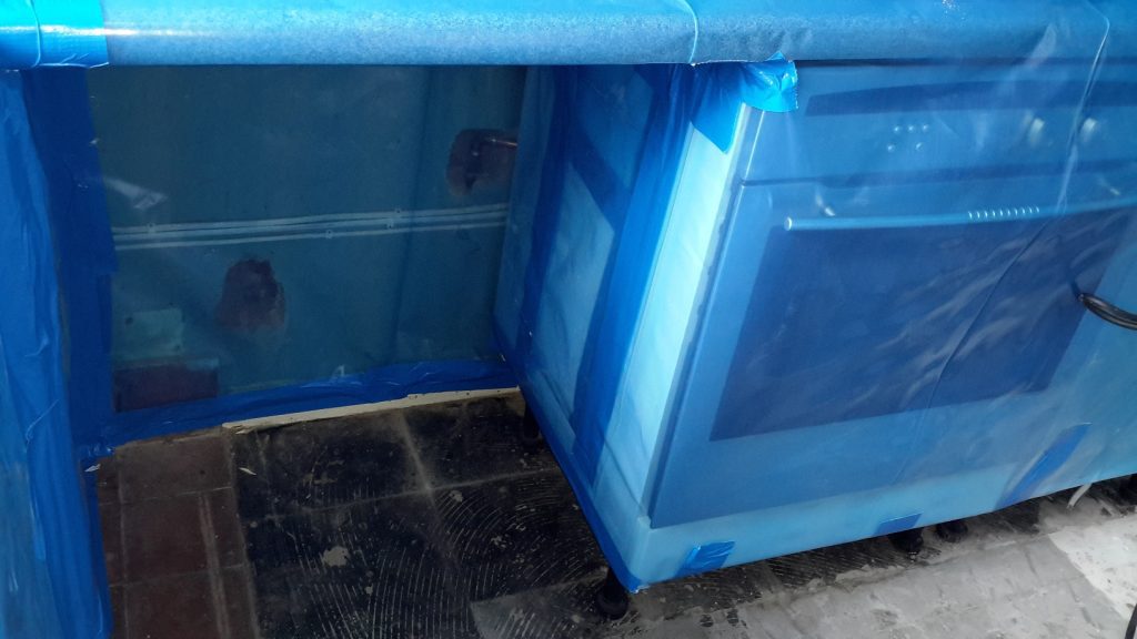 Surface Protection: We cover surfaces inside the enclosure with polythene or corex, focusing on hard-to-clean items like radiators and carpets. Easy-to-clean flat surfaces aren’t as big a concern.