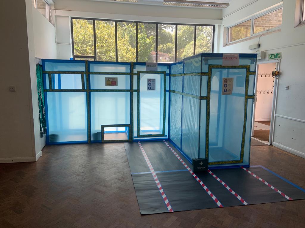 A polythene (1000-gauge) enclosure is built around the work area, often on a timber frame, with all surfaces covered. The enclosure prevents asbestos fibres from escaping into surrounding areas.