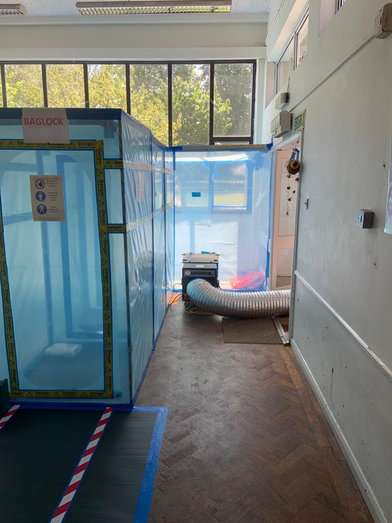 - Stage 4 – Once stage 3 has passed and fibre levels are safe, the enclosure can be taken down. The analyst then performs a final inspection before signing the area off as safe for reoccupation.